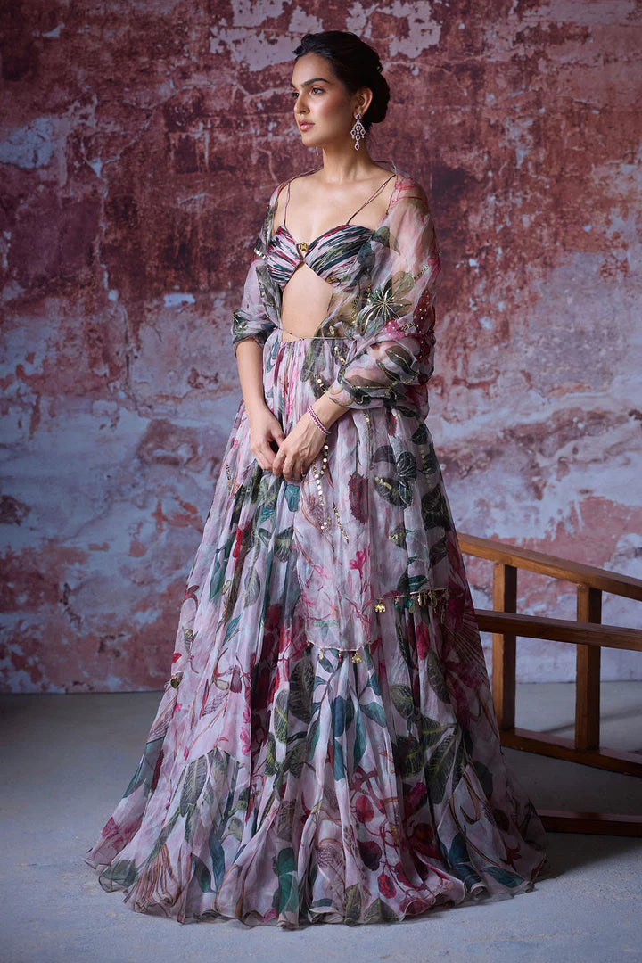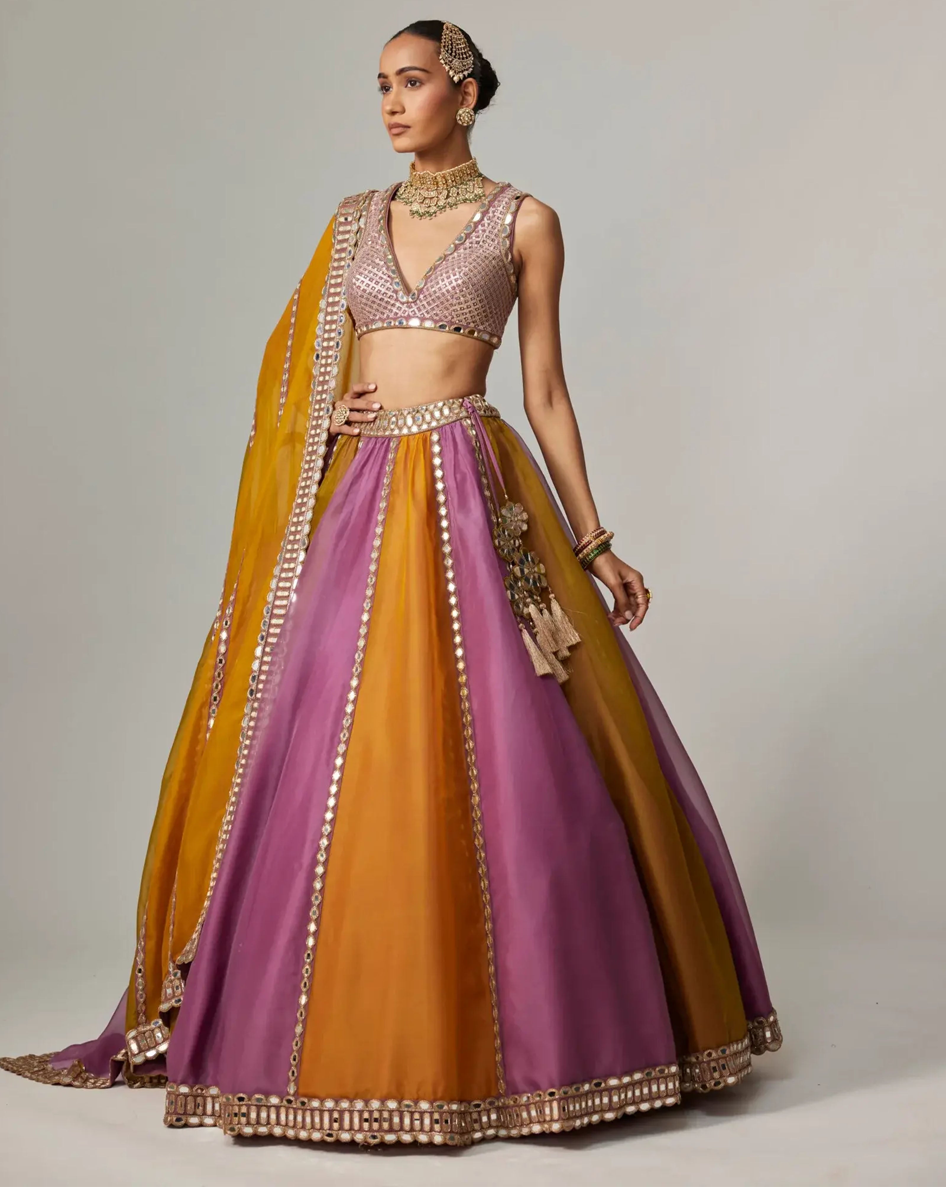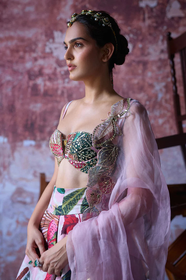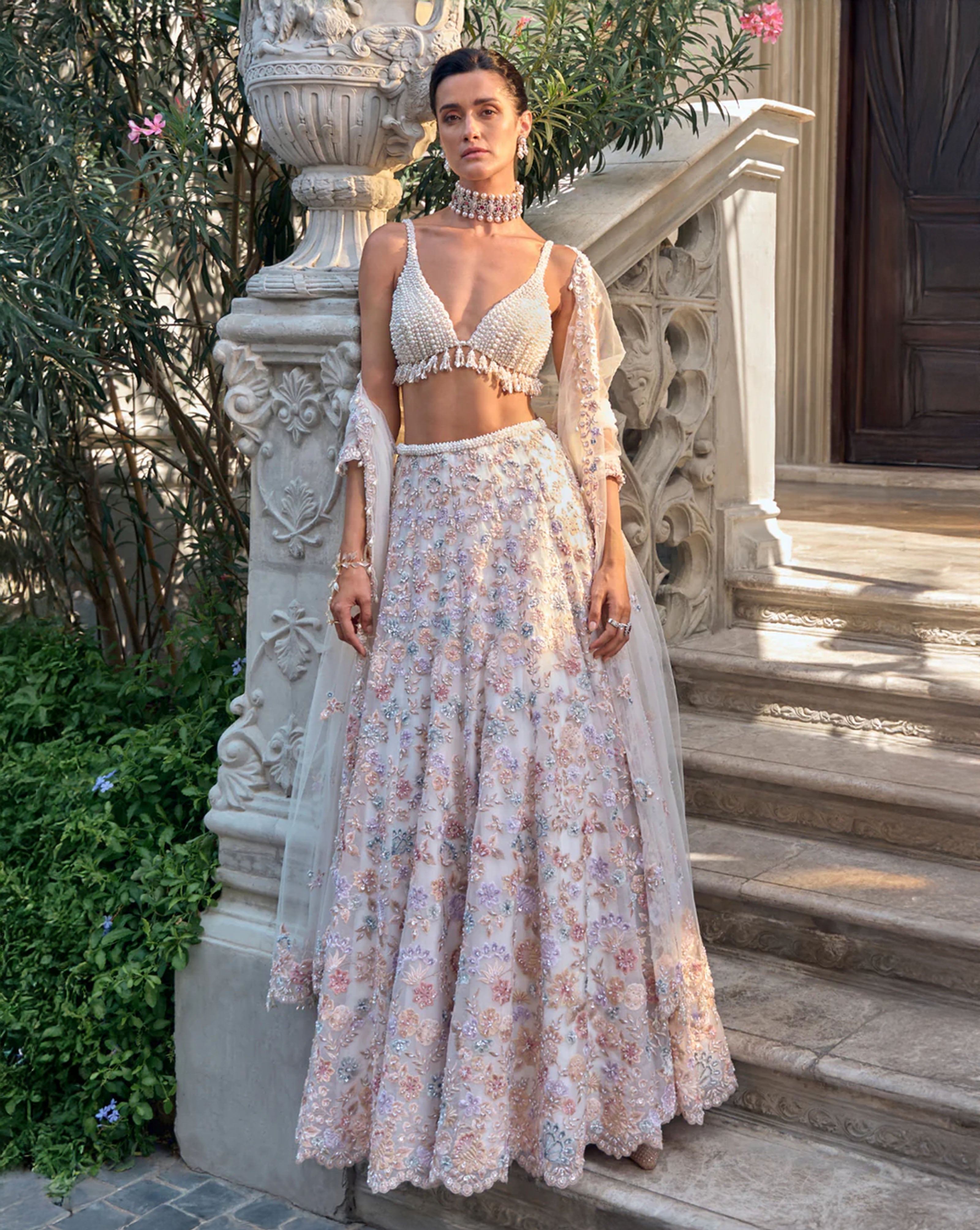 Multi-Coloured Pearl Lehenga Set