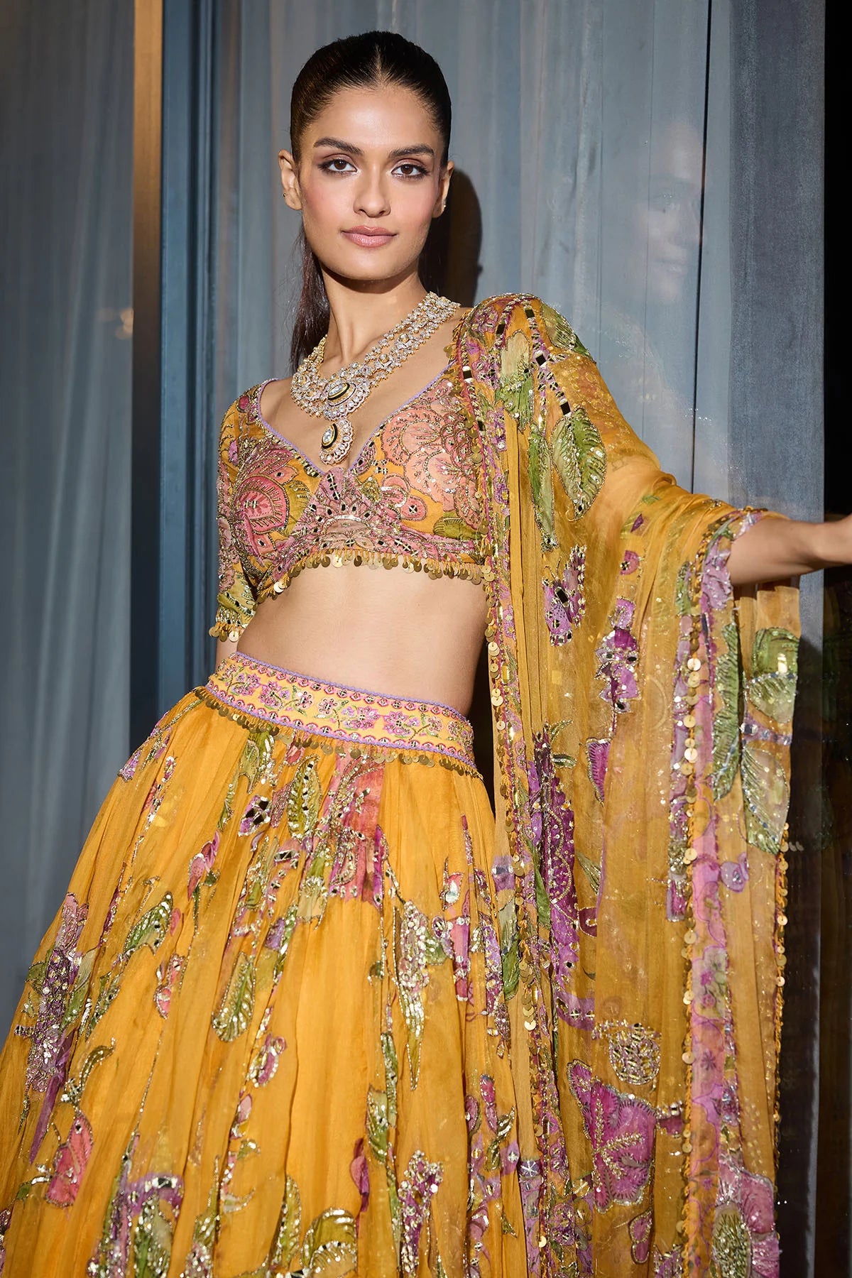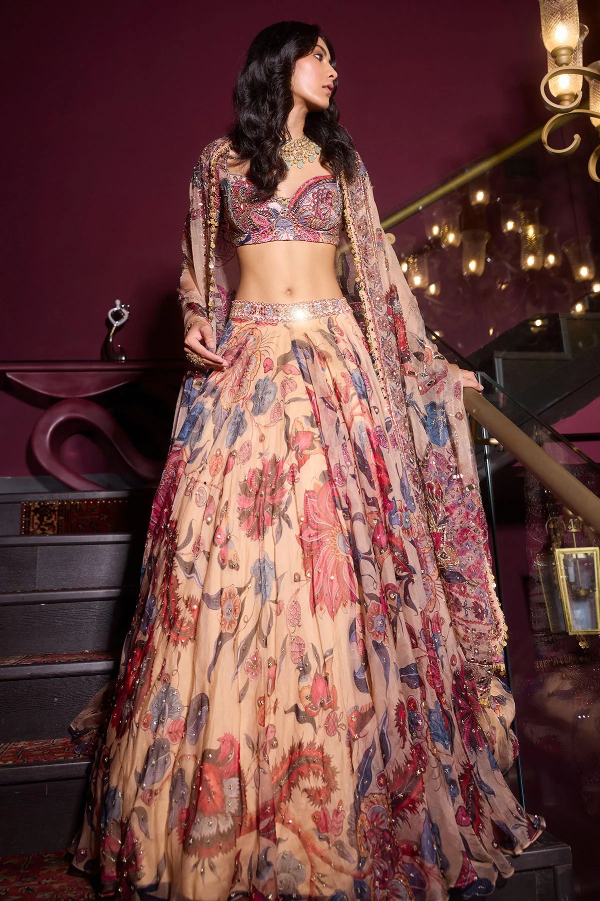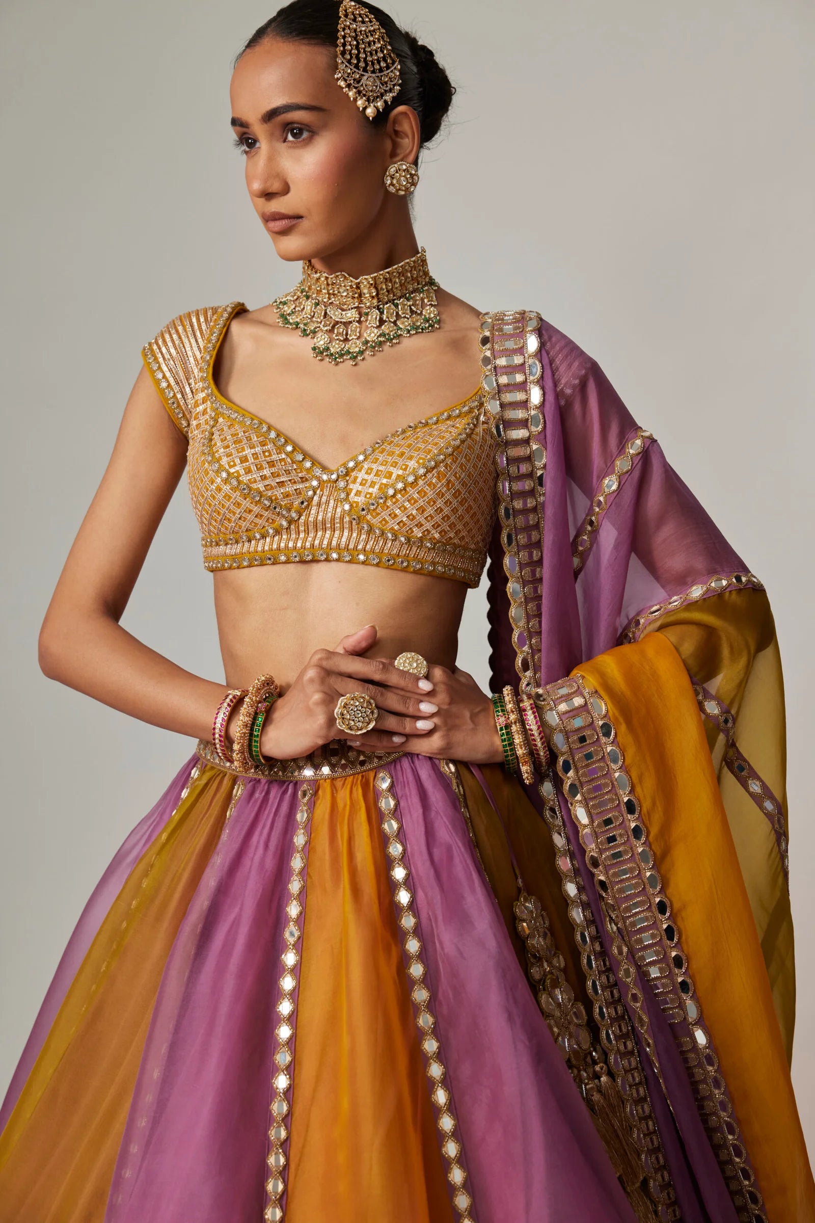 Multi-Coloured Pearl Lehenga Set