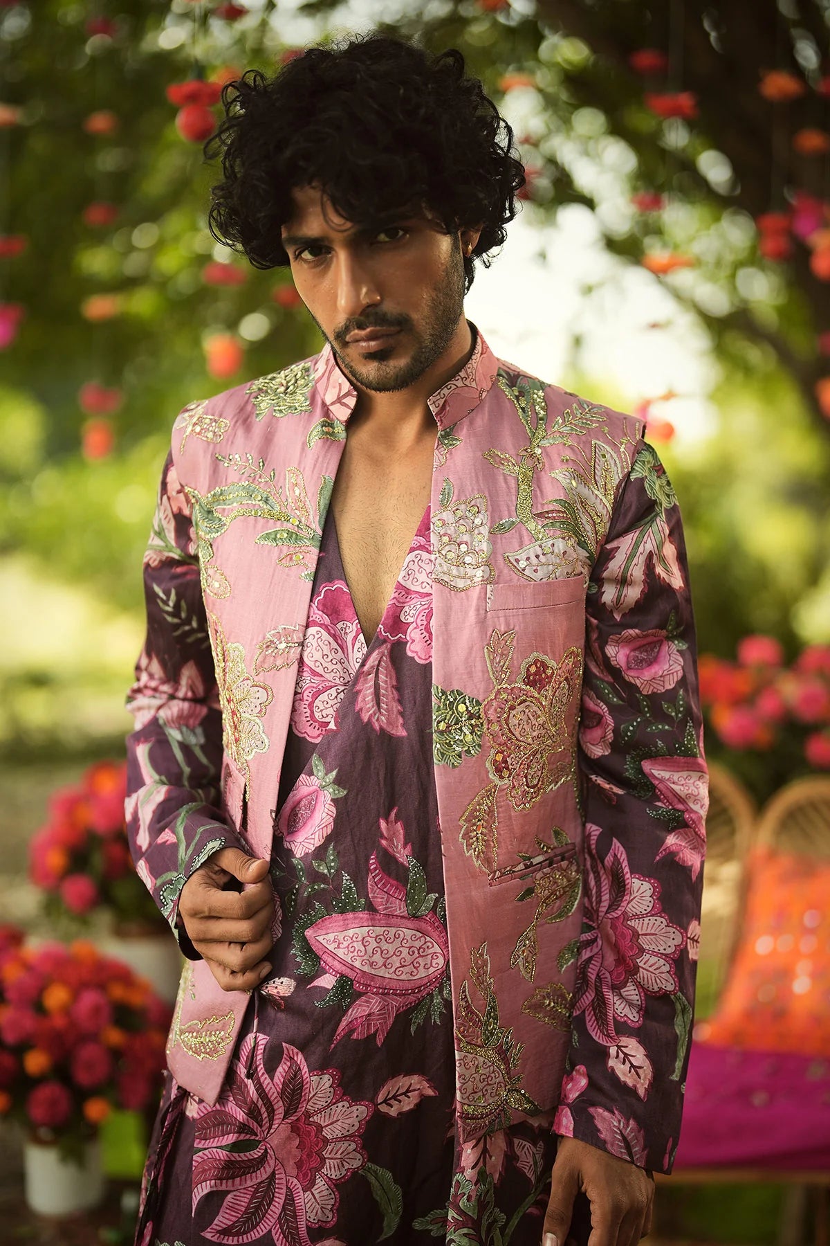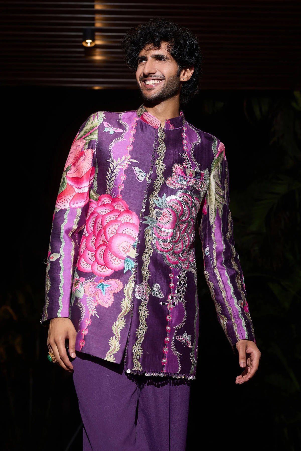 Multi-Coloured Open Sherwani Set