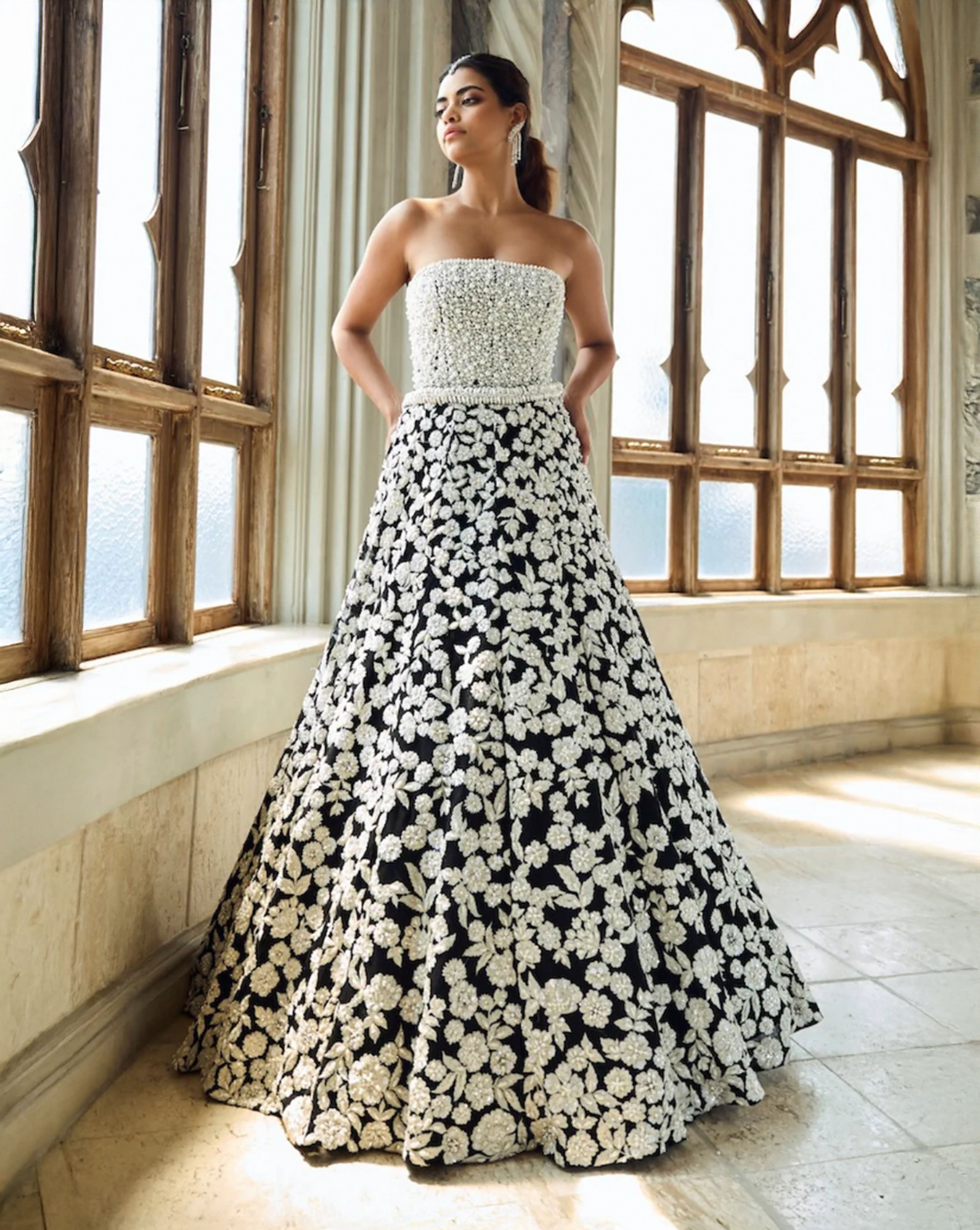 Black & White Corset Lehenga Set