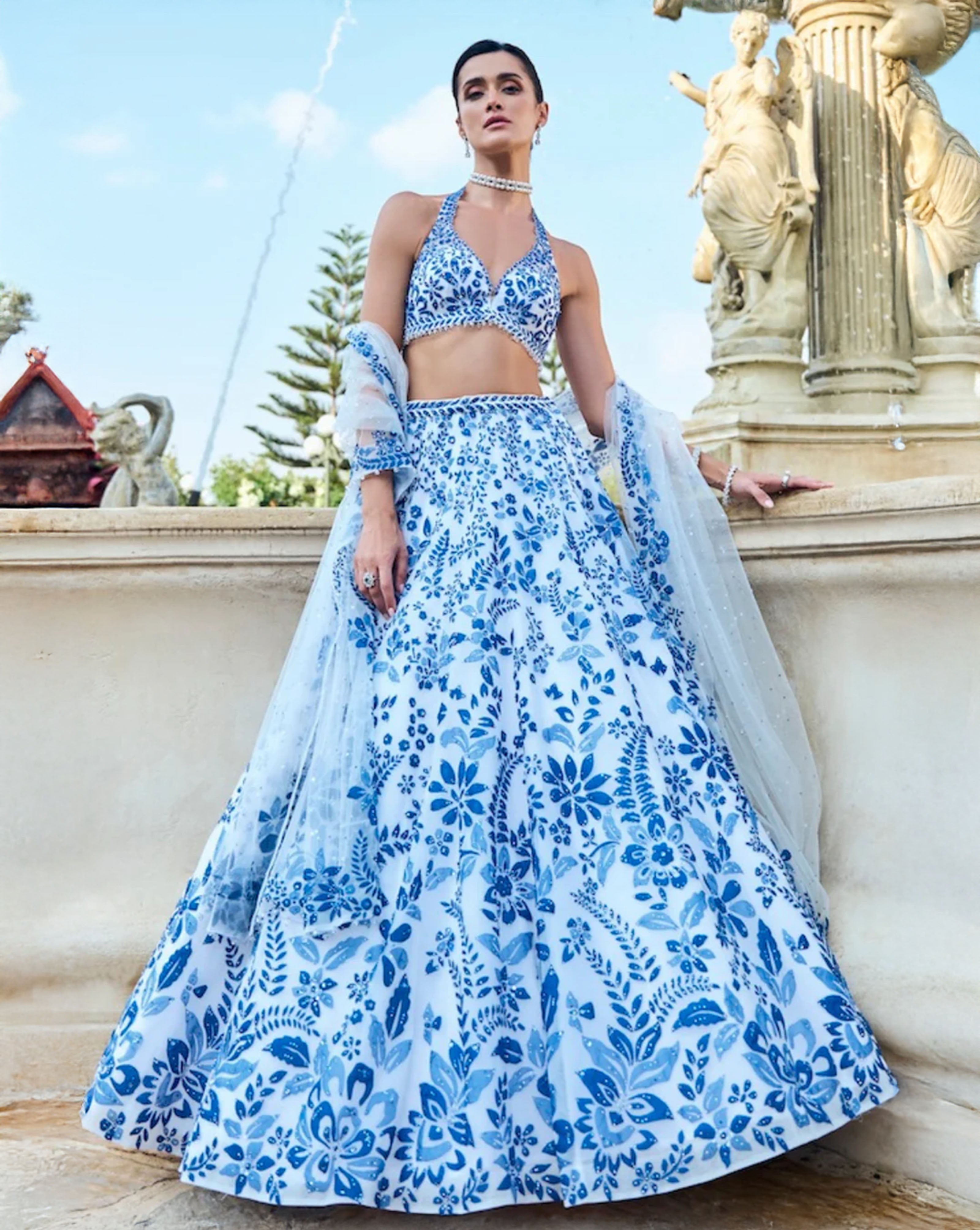 Blue Applique Lehenga Set