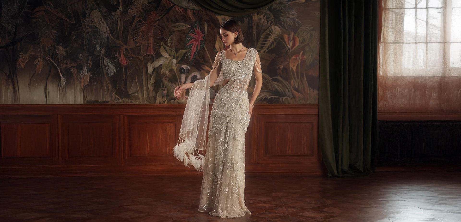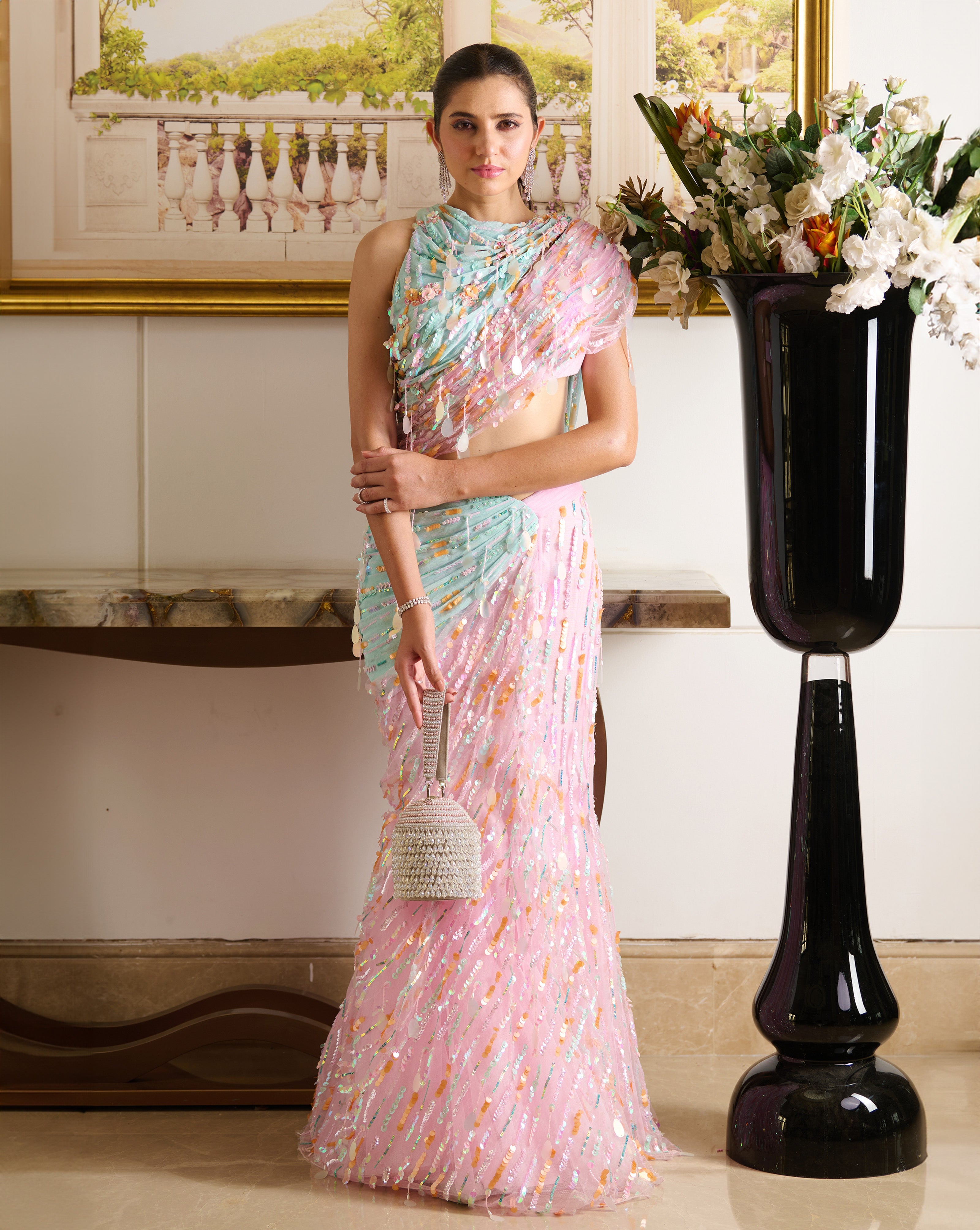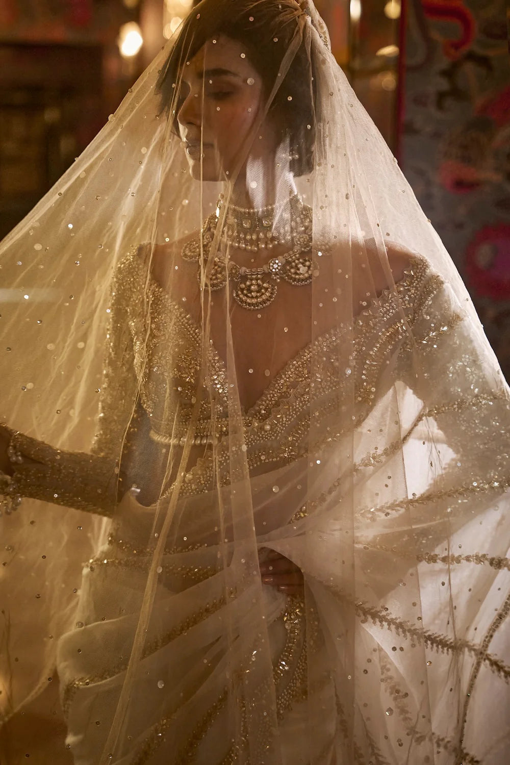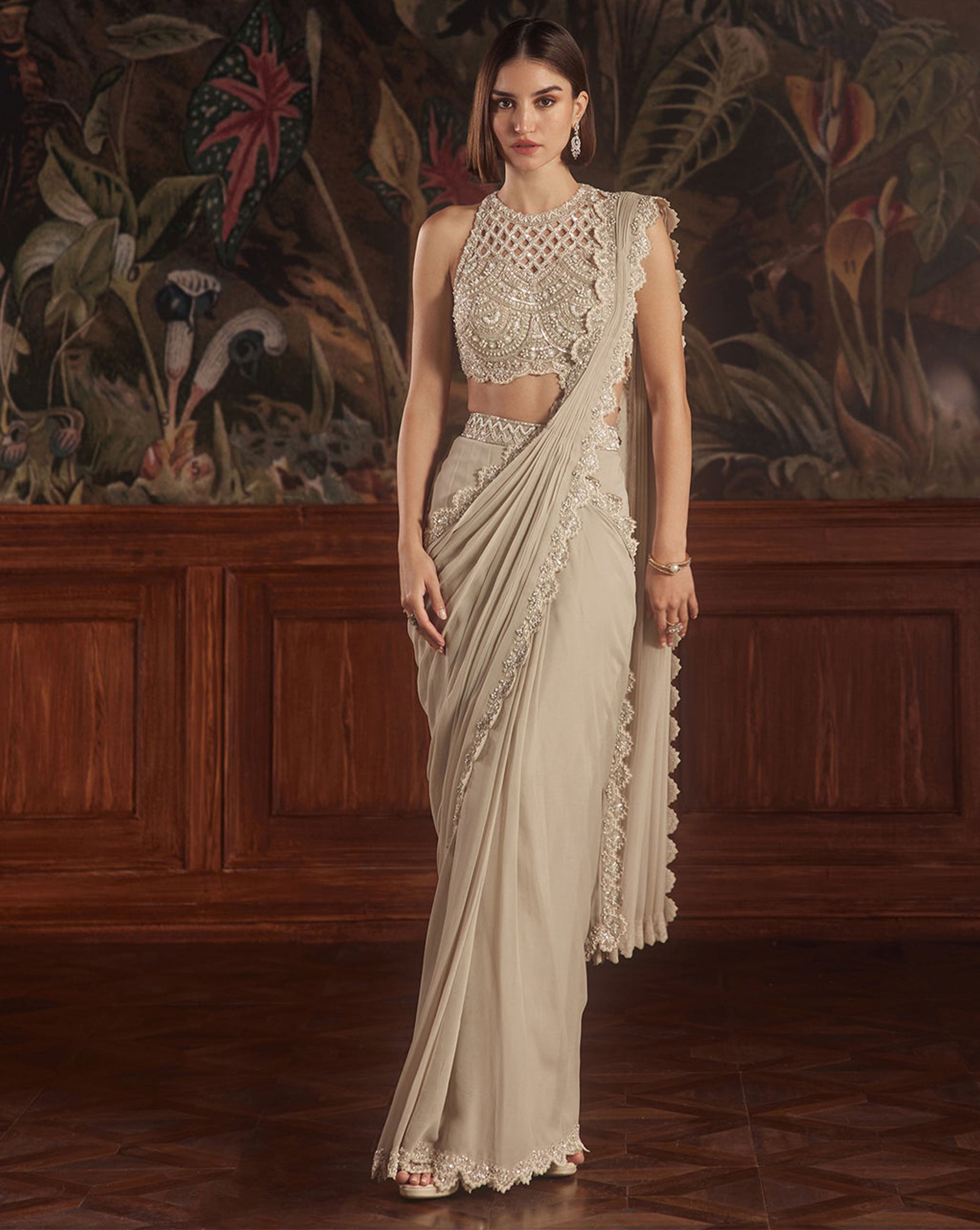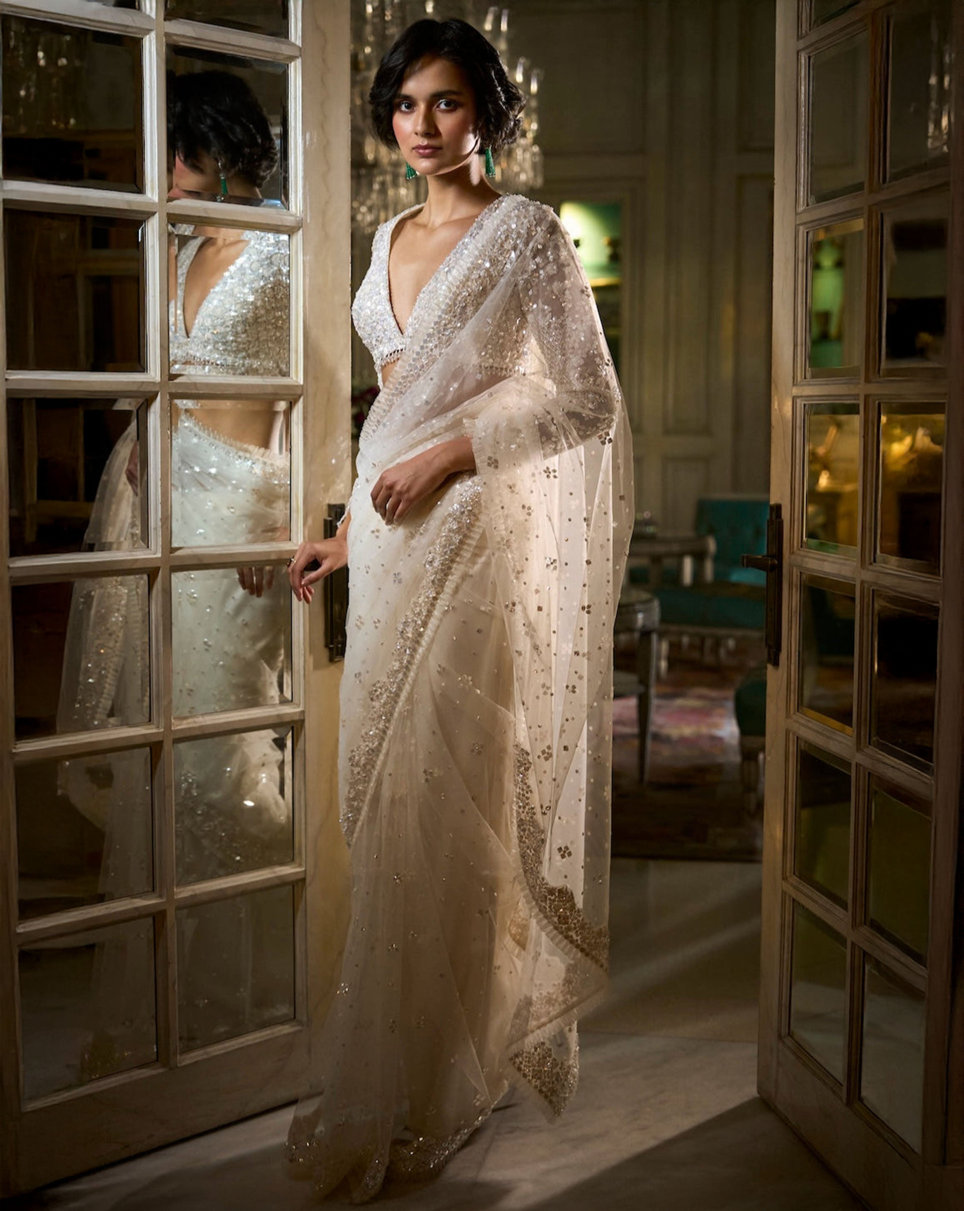 Ivory Sequin Saree