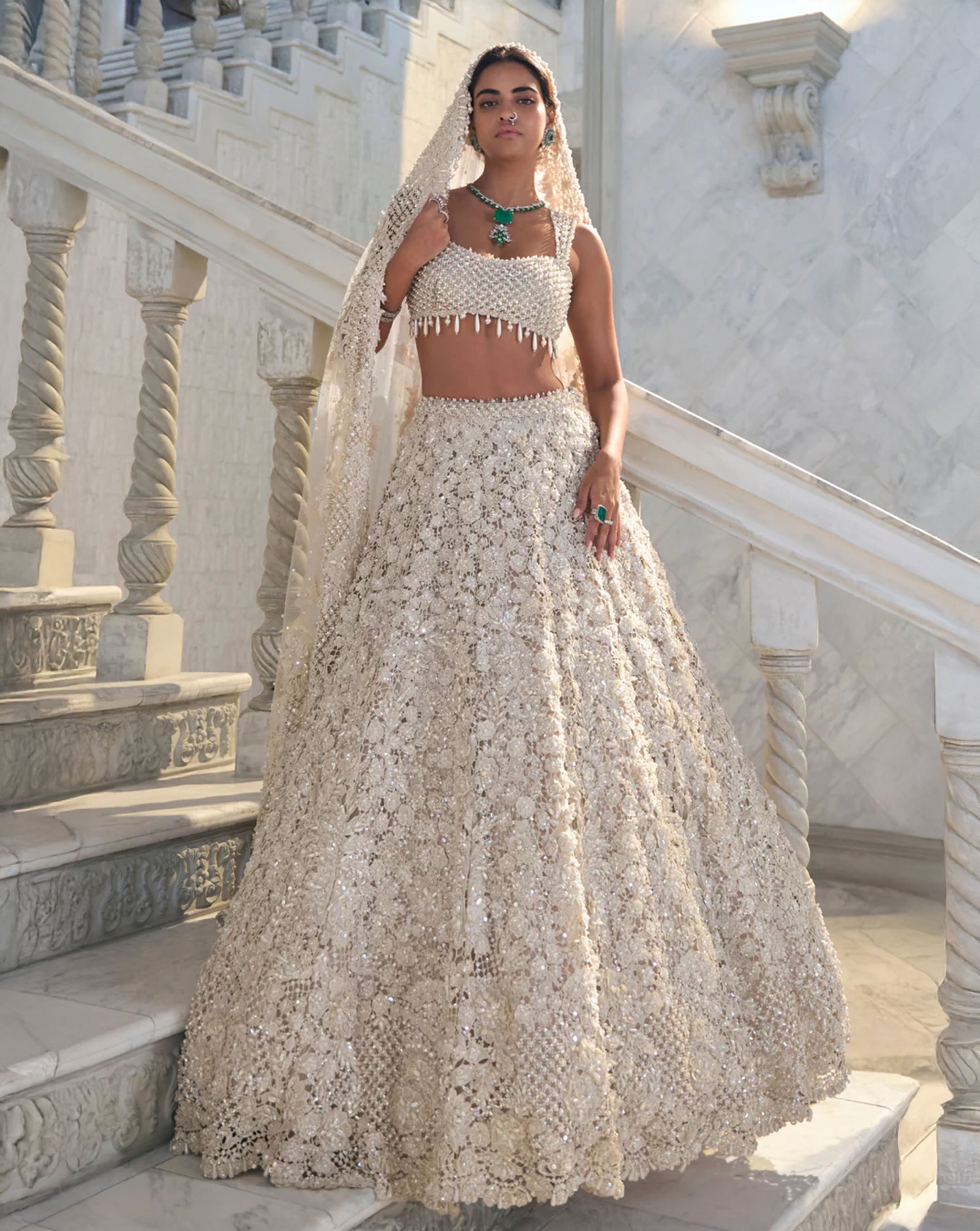 White Sequin Lehenga Set - Ready to Ship