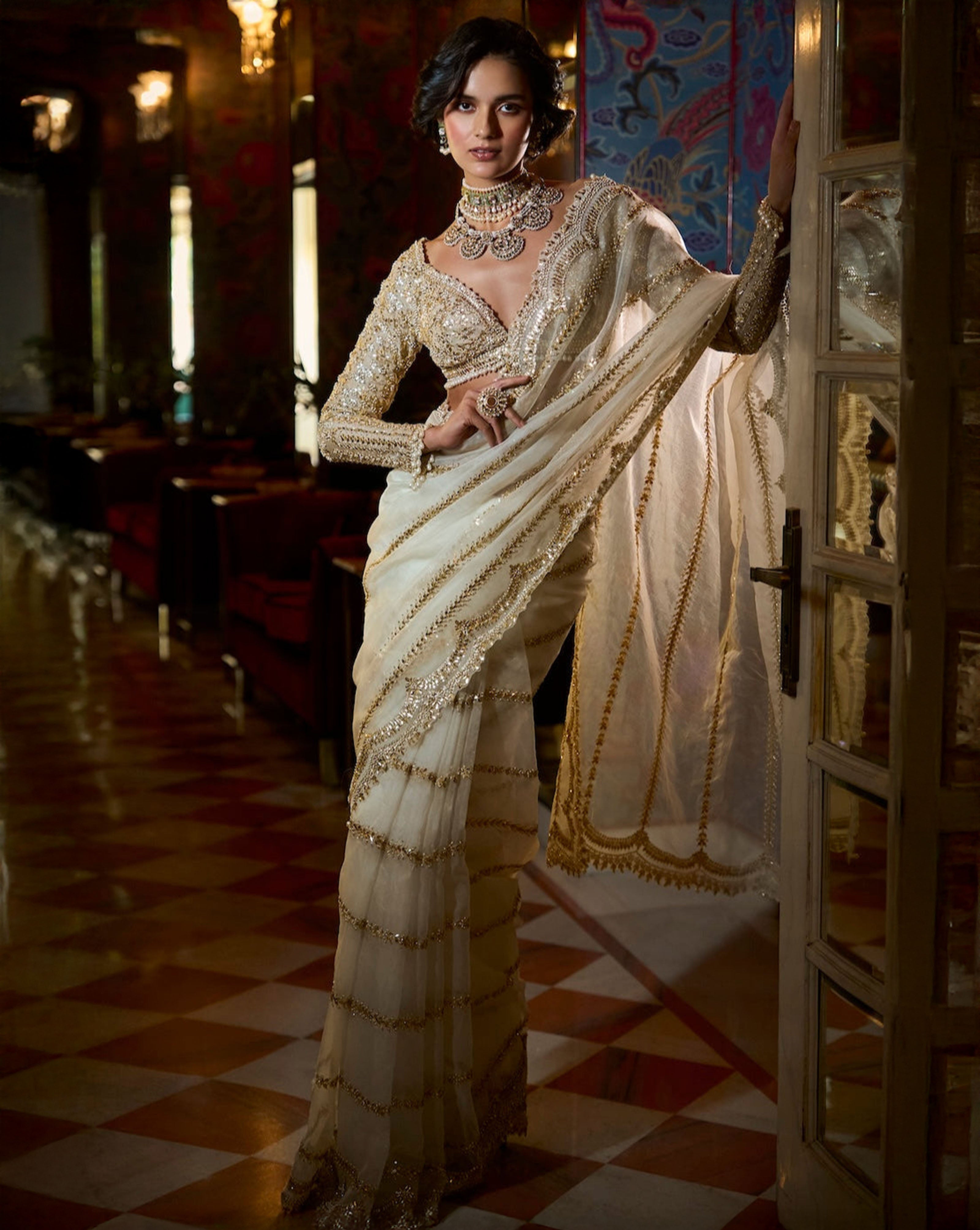 Ivory Pearl Saree