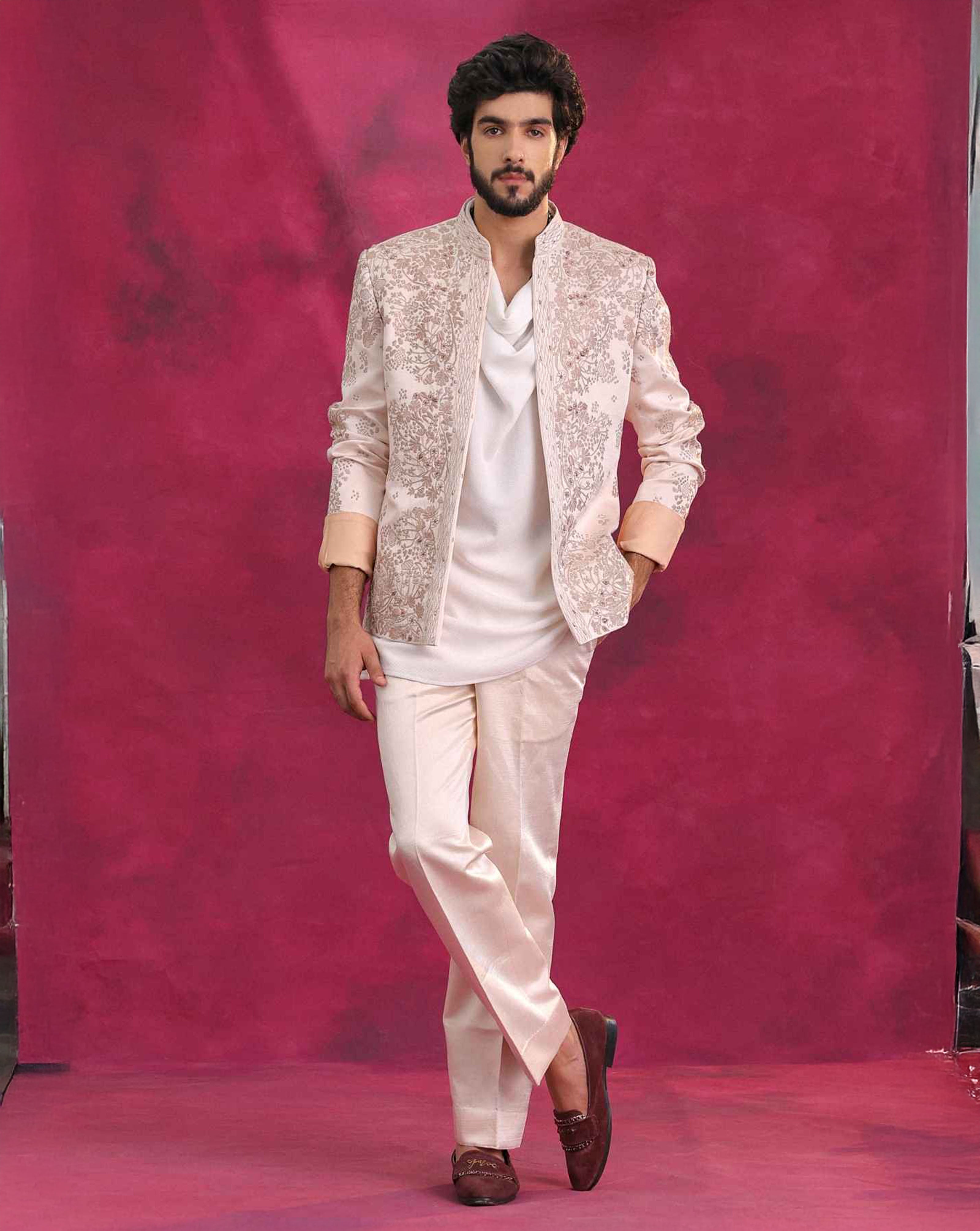 Nude Pearl Sherwani Set