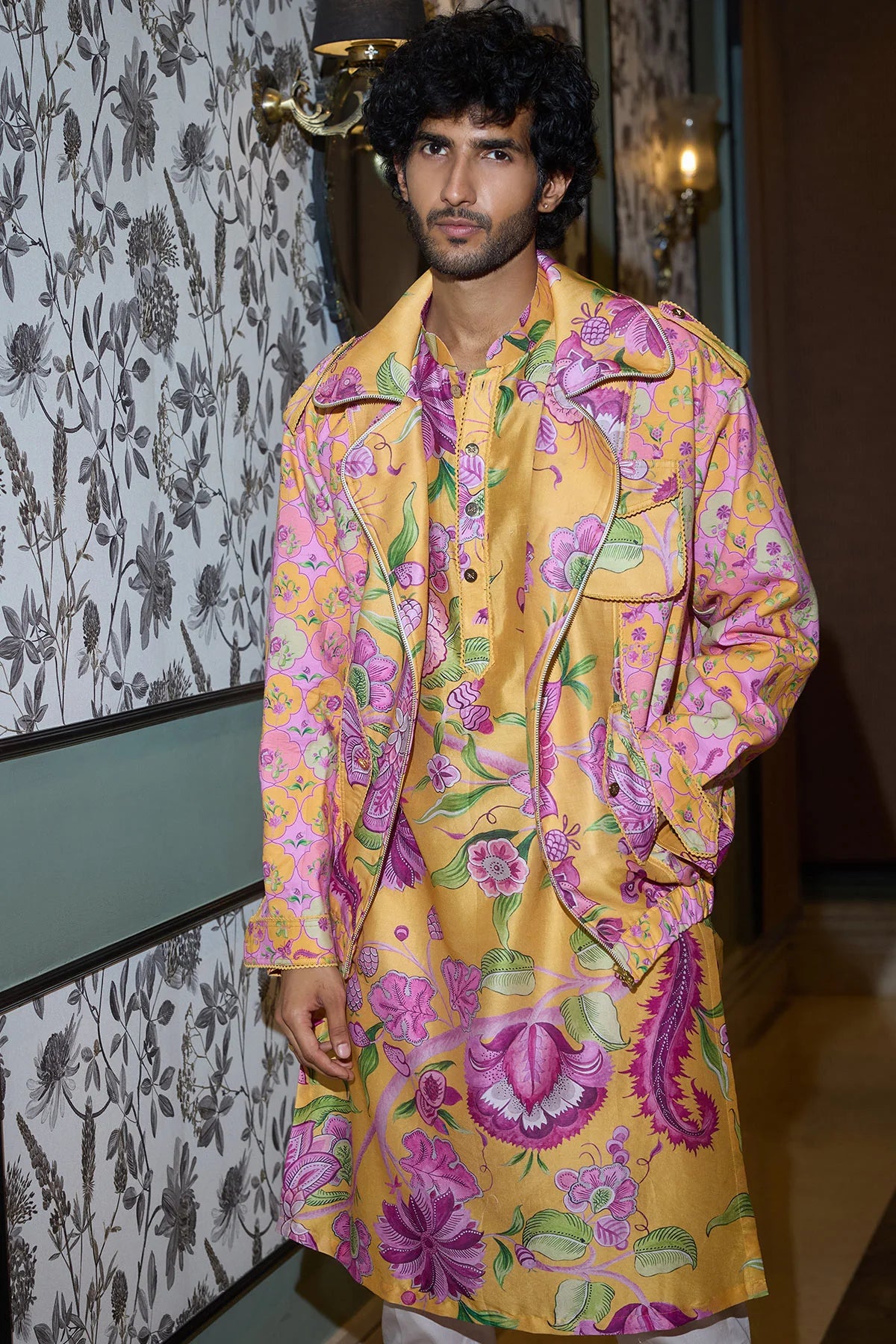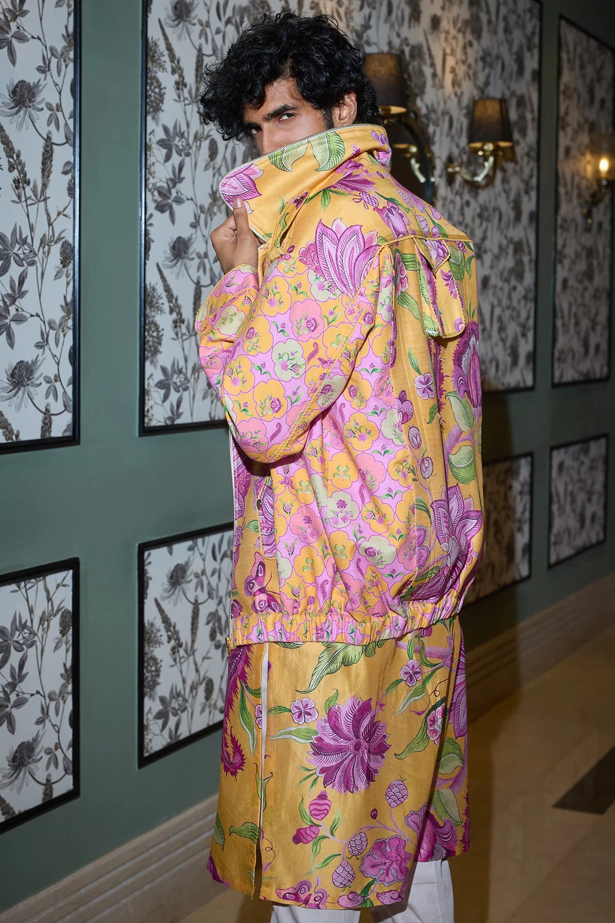 Embellished Kurta Set Featuring Signature Mm Buttons Paired with Bomber Jacket