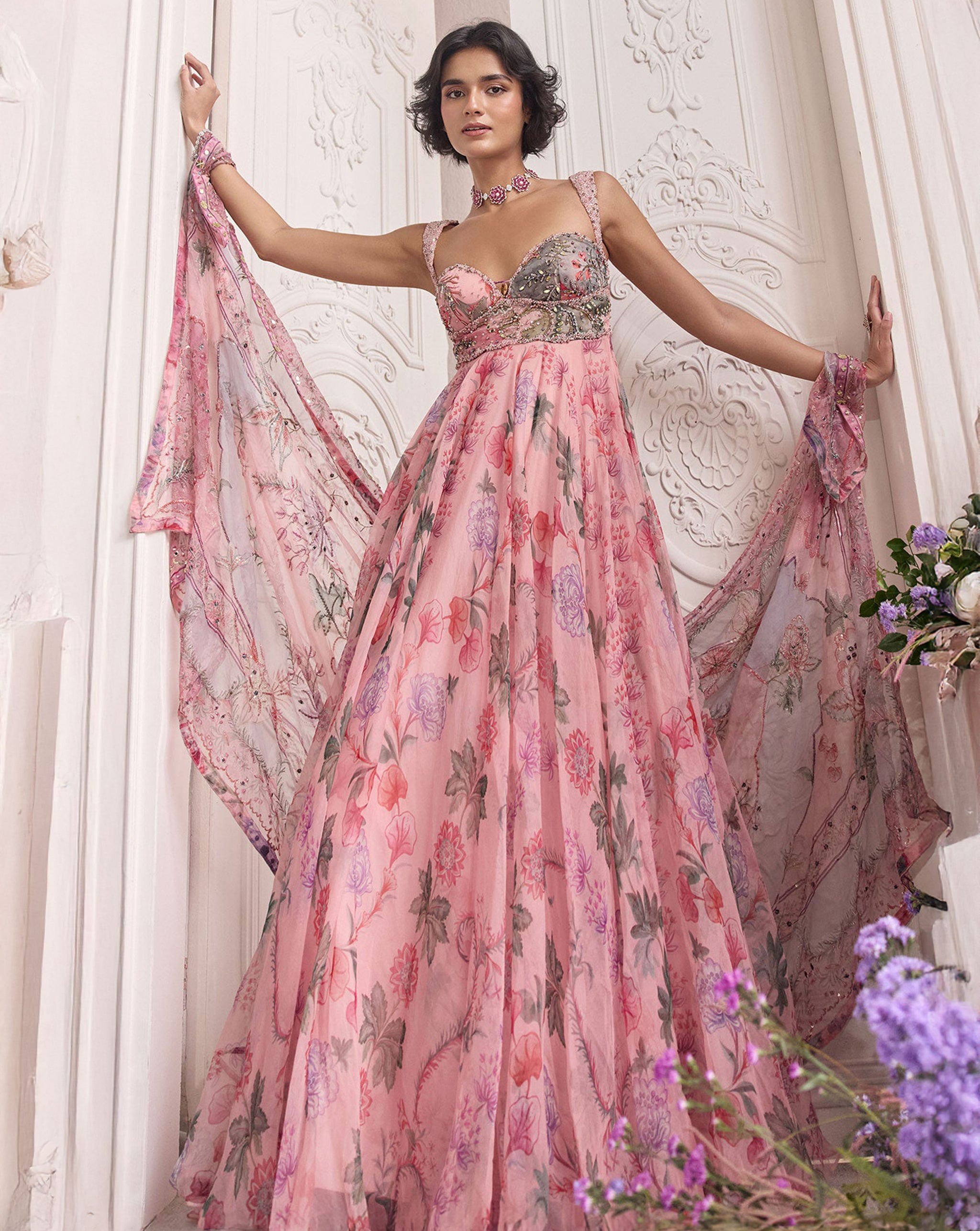Hand Embroidered Anarkali Paired With Heavy Embroidered Dupatta