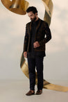 Featuring a black linen silk front potli button kurta. Paired with matching tapered trousers.