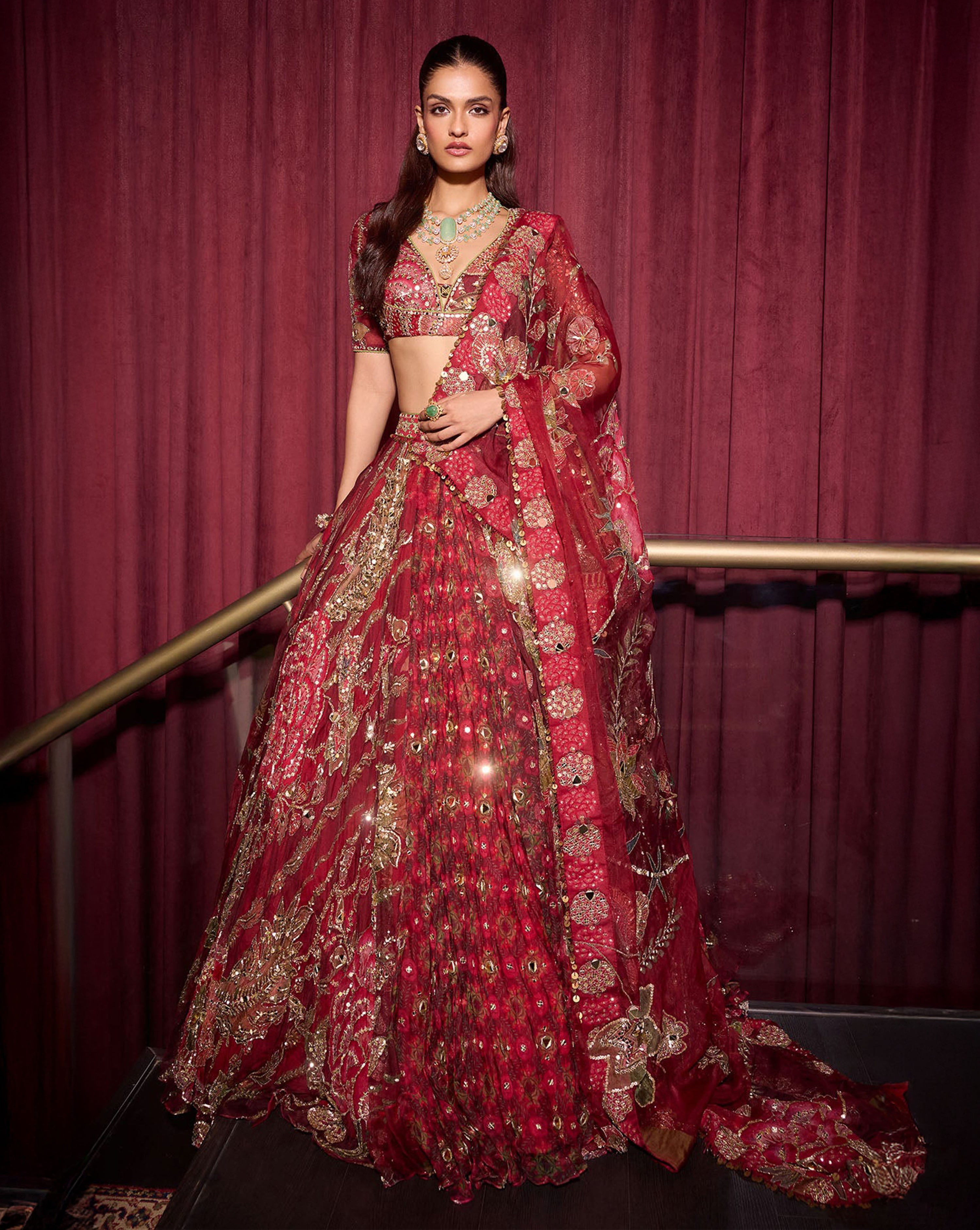Hand Embroidered Multi Panelled Bridal lehenga Set with Heavy Odhani