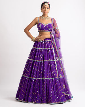 Purple Noodle Strap Multi Tier Lehenga Set