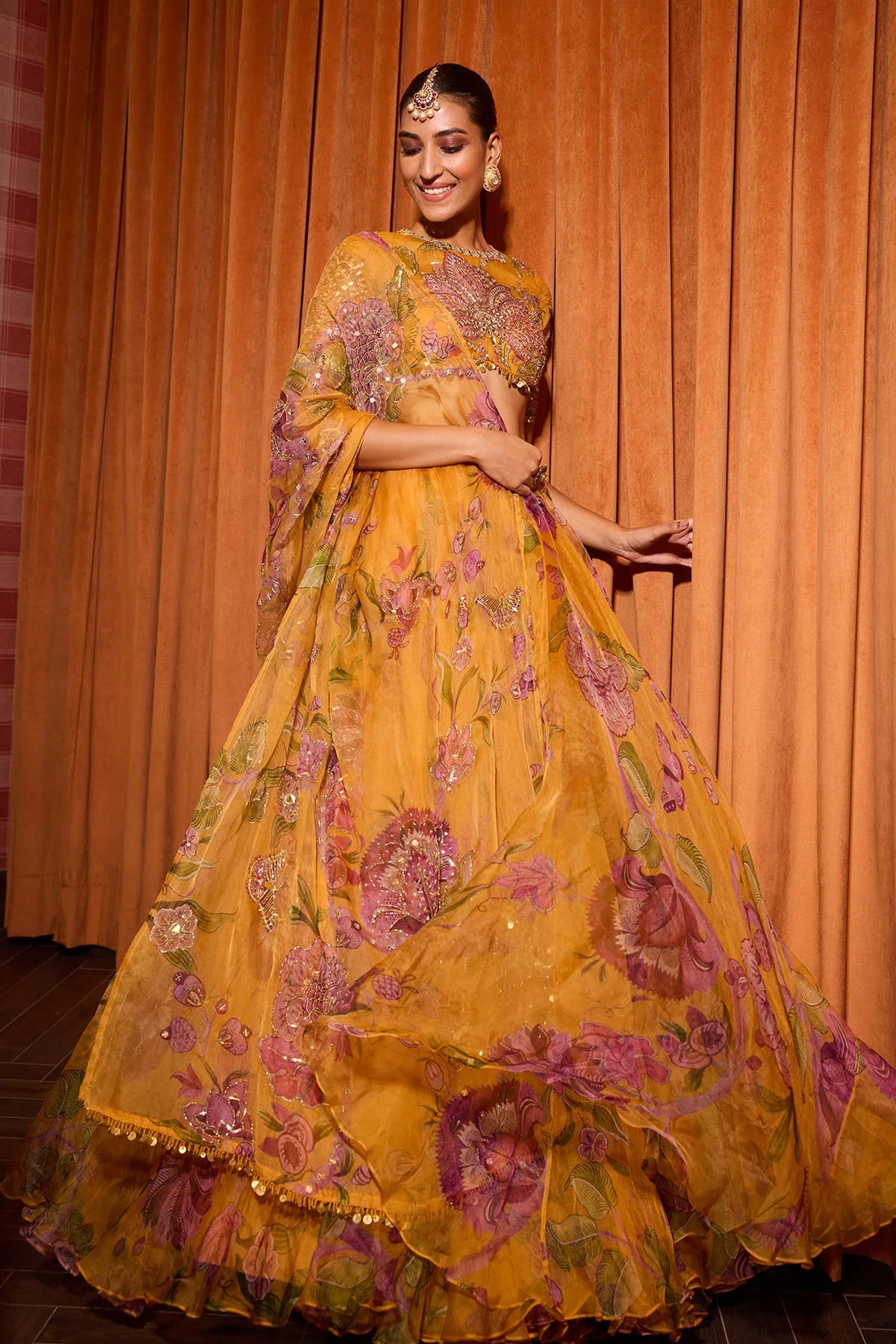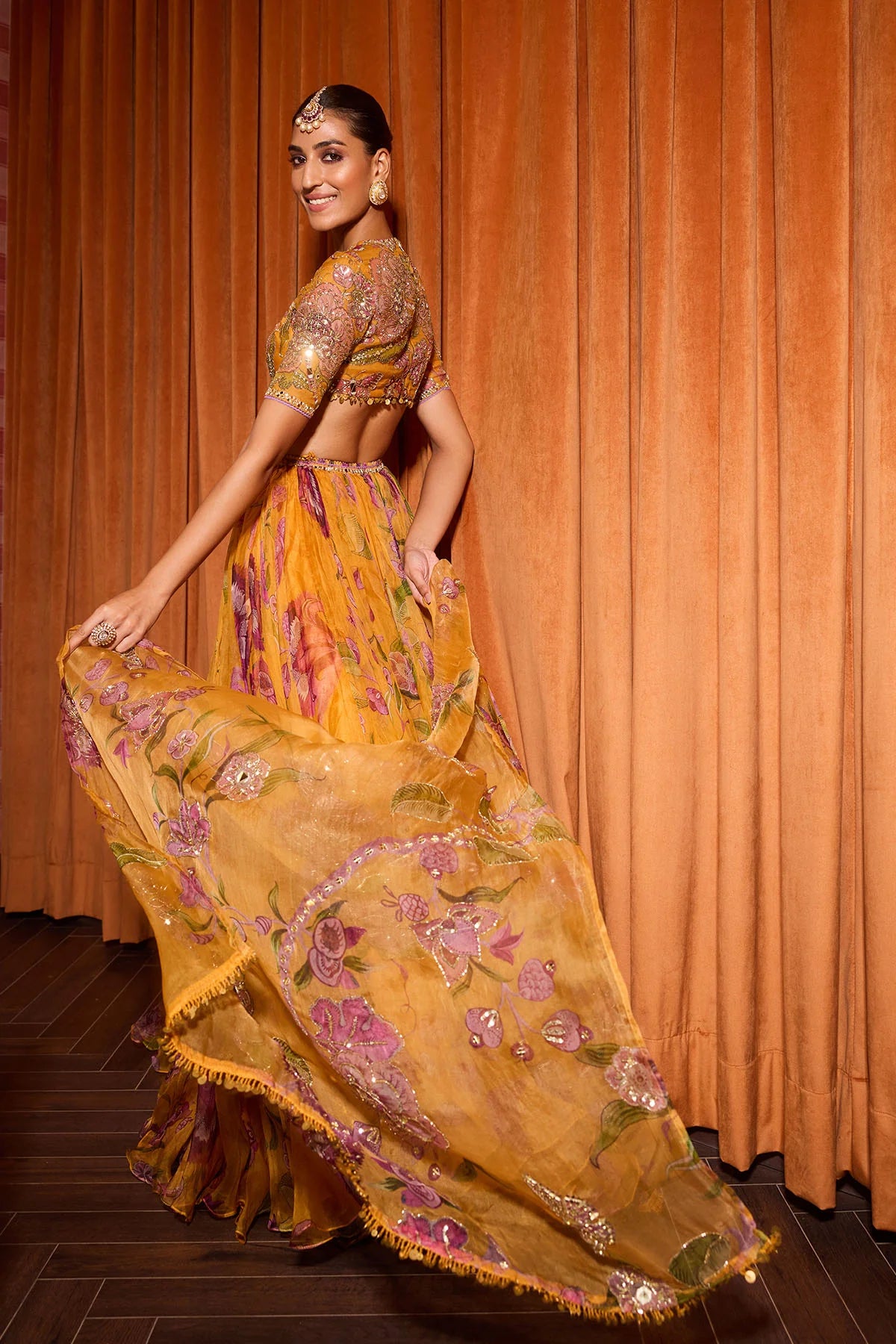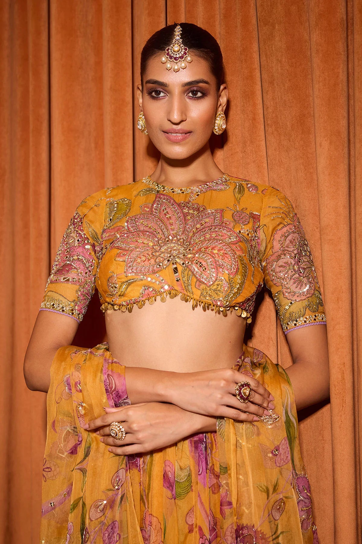 Hand Embroidered Blouse and Dupatta with Lehenga.