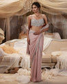 This bubble pink pre-draped saree comes with a blouse & a pre-draped saree. The textile is georgette with a net blouse having 3d leaf embroidery. The ensemble showcases intricate and exquisite pearls, sequins, and cut- Dana embroidery, a classic and timeless silhouette.